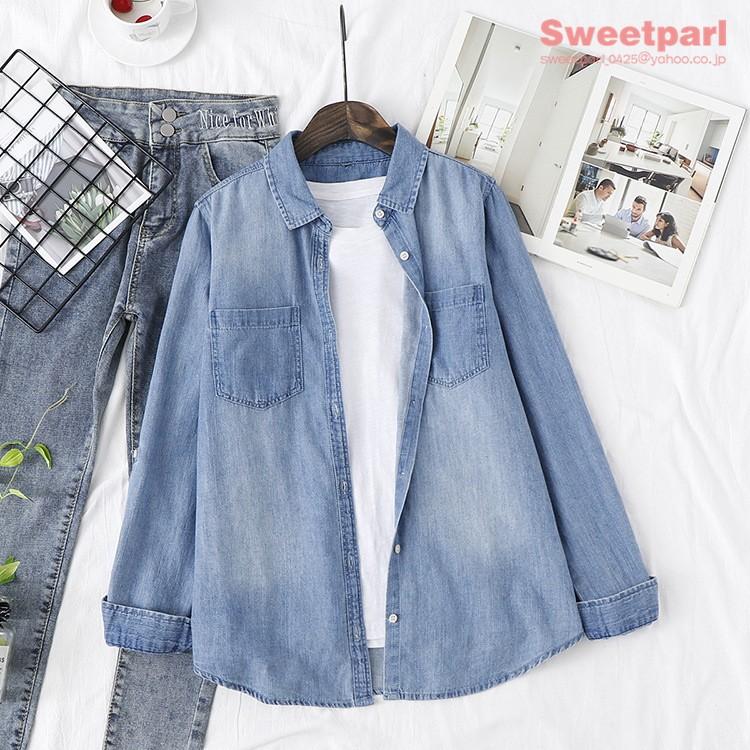 Qoo10 送料無料 レディース長袖デニムシャツ レディース服
